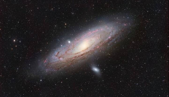 به نقل از اسپیس، عکس برچر جزئیات دیدنی و جذابی را در بازوهای مارپیچی گسترده این کهکشان به تصویر کشیده است که با عرض 260 هزار سال نوری و در نور شدید حاصل از تشکیل ستاره میدرخشد. رگههای متراکم غبار را میتوان در اطراف مرکز کهکشان درخشان آندرومدا مشاهده کرد که گمان میرود میزبان یک سیاهچاله کلانجرم با جرم 140 میلیون برابر خورشید ما باشد.