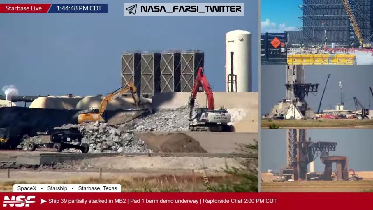 1- سکوی پرتاب شماره 1 در حال تخریب است؛ نمونه قبلی قرار است با سیستم انحراف شعله جدید مشابه سکوی دوم جایگزین شود.