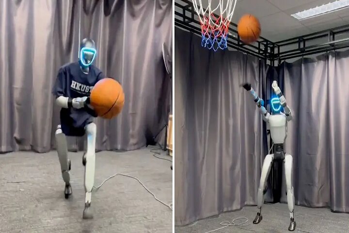 ویدئویی، یک ربات انساننمای جمعوجور یونیتری را نشان میدهد که در زمین بازی سُر میخورد و با سرعت و کنترلی شگفتانگیز و طبیعی، شوت میزند. این گروه ادعا میکنند که این اولین نمایش جهان از یک ربات است که حرکات بسکتبال را در یک محیط واقعی انجام میدهد.