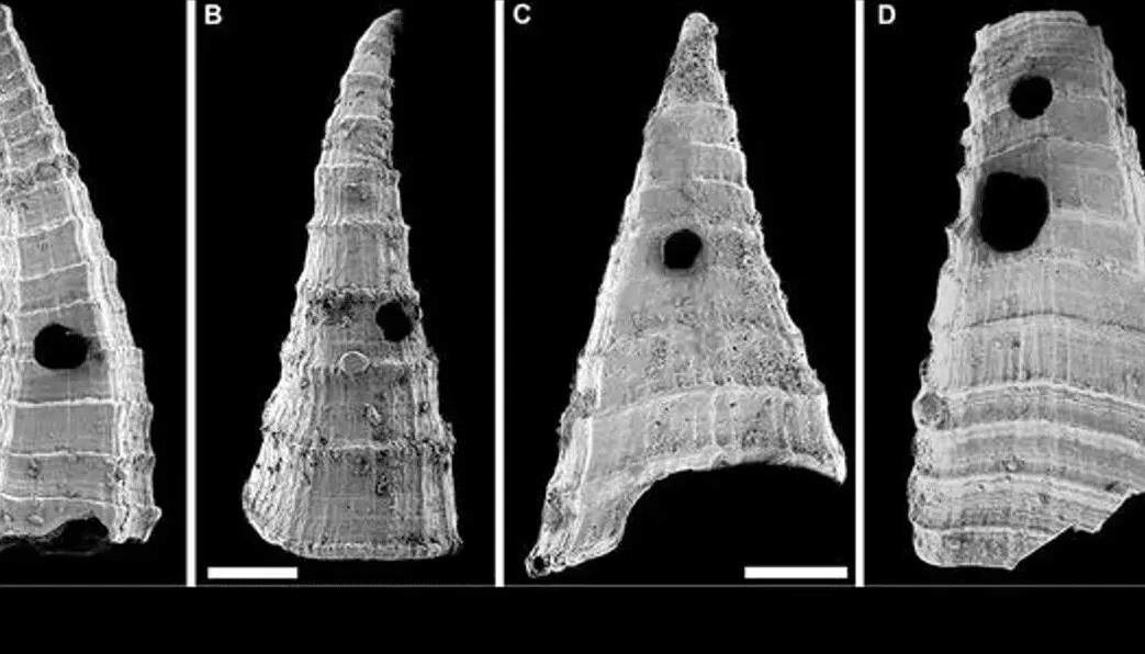 حالا، بیکنل و همکارانش از قرار معلوم، آن شواهد را به شکل سوراخهایی در پوستههای Lapworthella fasciculata یافتهاند؛ حیوان کوچکی که با دوکفهایهای بازوپا ارتباط دوری داشته است.