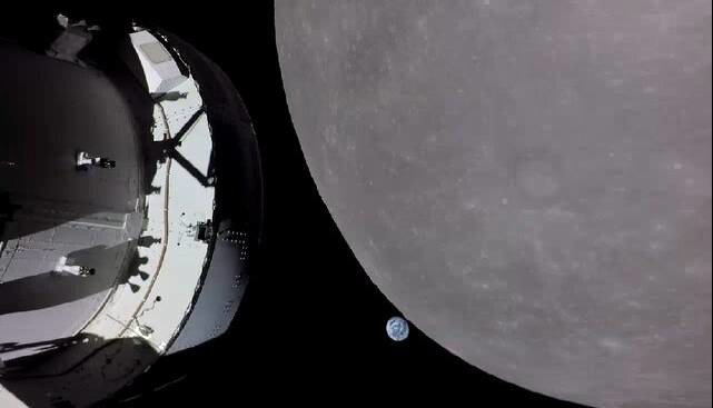 در ششمین روز از ماموریت «آرتمیس ۱»(Artemis I)، سیاره مادری ما از دید دوربین بیرونی کپسول فضایی «اوریون» (Orion) که از مدار زمین خارج میشد، در حال غروب کردن در پشت لبه روشن ماه بود. اوریون در حال پرواز با کمک نیروی موتور خود بود که آن را به فاصله ۱۳۰ کیلومتری از سطح ماه رساند. سرعت بهدستآمده در مانور پرواز برای رسیدن به یک مدار دوردست به دور ماه استفاده شد.